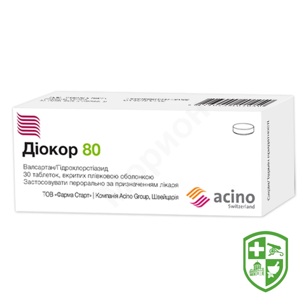 80 мг валсартану і 12,5 мг гідрохлоротіазиду (Діокор 80)