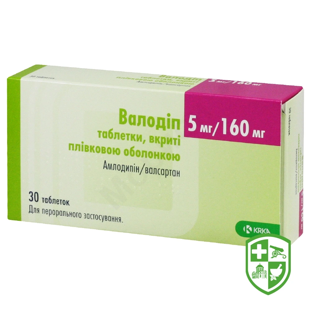 Валодіп, таблетки вкриті плівковою оболонкою, 5 мг/160 мг та Валодіп, таблетки вкриті плівковою оболонкою, 10 мг/160 мг: