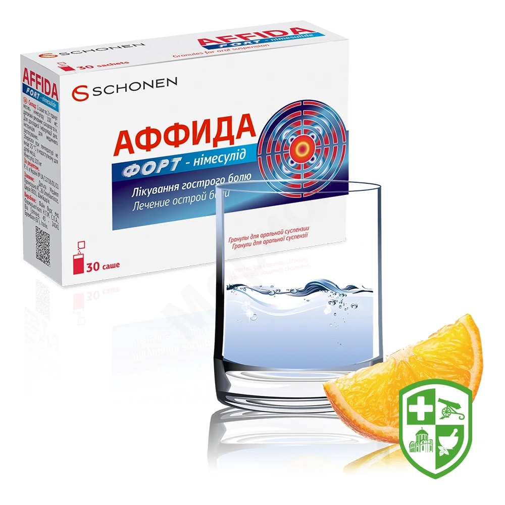Аффида форт-німесулід — нестероїдний протизапальний засіб групи метансульфонанілідів, який проявляє протизапальну, знеболювальну та жарознижувальну дію. Лікувальна дія препарату зумовлена тим, що він взаємодіє з каскадом арахідонової кислоти і знижує біосинтез простагландинів шляхом інгібіції циклооксигенази.