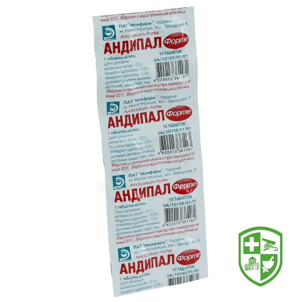 діючі речовини: 1 таблетка містить метамізолу натрію 500 мг (0,5 г), бендазолу гідрохлориду 40 мг (0,04 г), папаверину гідрохлориду 40 мг (0,04 г);
