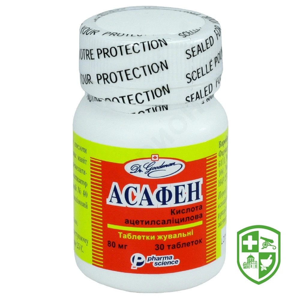 У зв’язку з тим, що таблетки не мають кишковорозчинної оболонки, для запобігання виникненню реакції гіперчутливості та ерозивно-виразкових пошкоджень необхідно за годину до прийому Асафену прийняти препарати, які знижують секрецію (омепразол, антациди) або мають гастропротекторну дію (кверцетин).