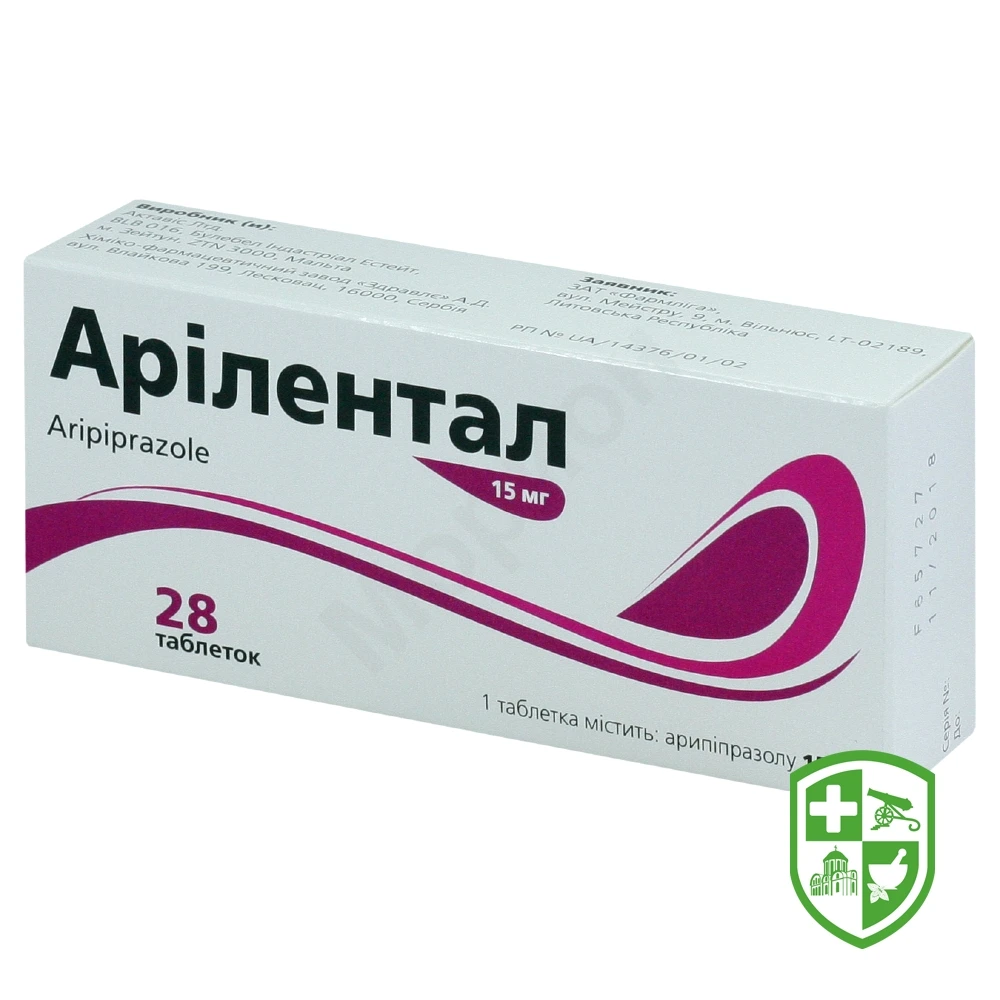 Арілентал, таблетки, по 15 мг, № 7 у блістері, по 1 блістеру або по 4 блістери у пачці: таблетки білого кольору, круглі двоопуклі, з гравіруванням «15» з одного боку та «ZL» з іншого.