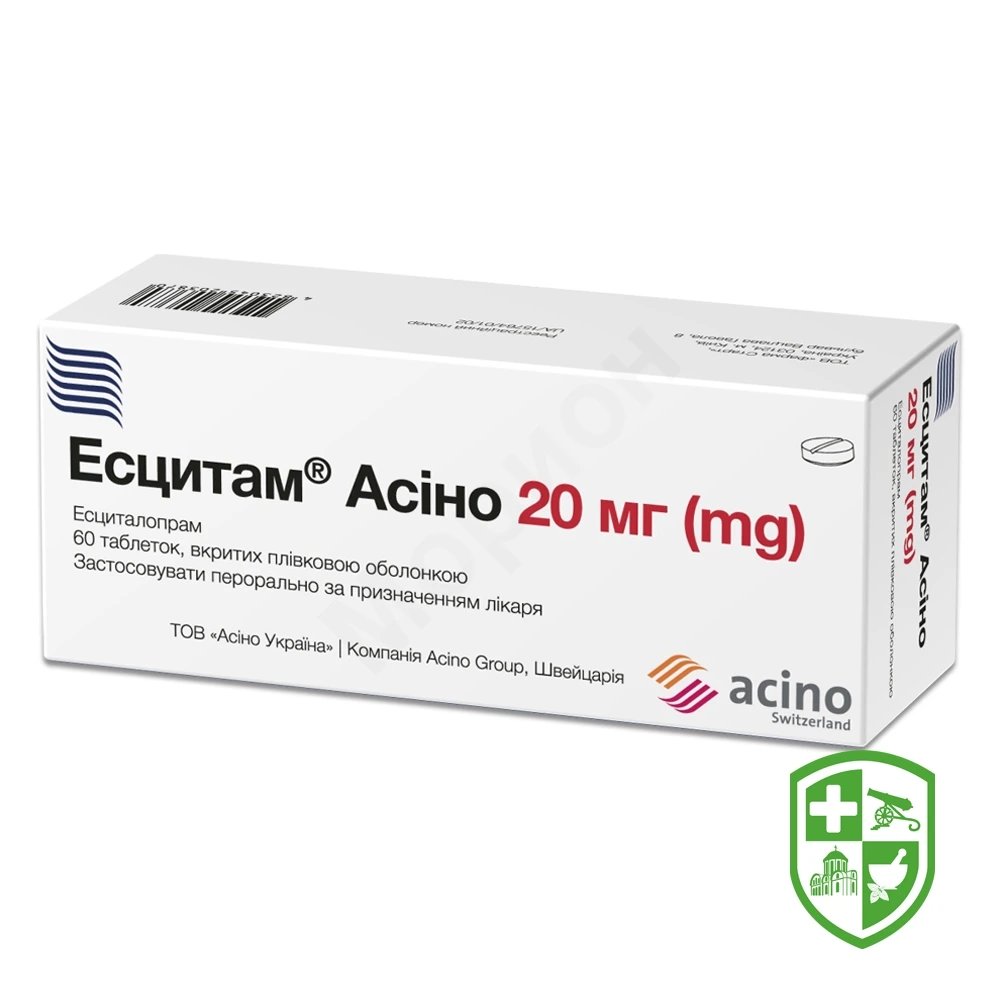 1 таблетка містить есциталопраму оксалату (12,775 мг або 25,55 мг) у перерахуванні на есциталопрам 10 мг або 20 мг;