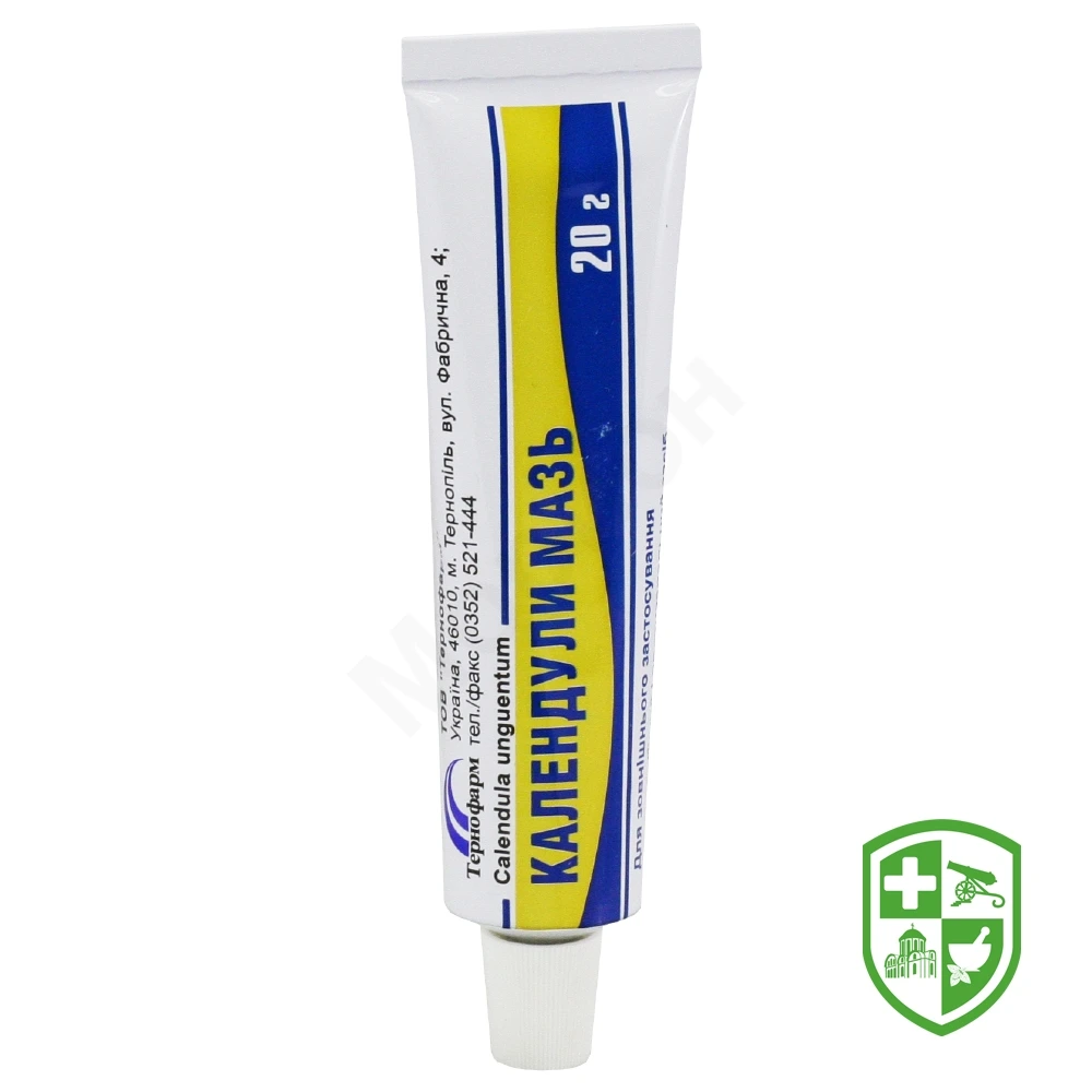 діюча речовина: 1 г мазі містить календули настойки (tinctura Calendulae) (1:10) — 100 мг;