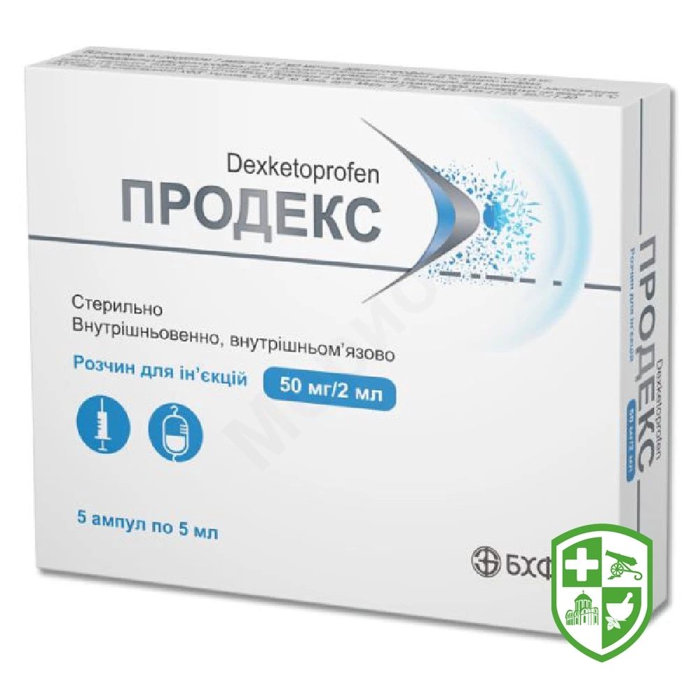 Підвищена чутливість до декскетопрофену, будь-якого іншого НПЗЗ або до допоміжних речовин препарату; застосування пацієнтам, у яких речовини з аналогічним механізмом дії, наприклад, ацетилсаліцилова кислота та інші НПЗЗ, провокують напади бронхіальної астми, бронхоспазм, гострий риніт або призводять до розвитку носових поліпів, появу кропив’янки або ангіоневротичного набряку; — якщо під час лікування кетопрофеном або фібратами виникали фотоалергічні або фототоксичні реакції; при шлунково-кишковій кровотечі або перфорації в анамнезі, пов’язаних із попередньою терапією НПЗЗ; — пептична виразка в активній фазі/шлунково-кишкова кровотеча або наявність в анамнезі шлунково-кишкової кровотечі, виразок або перфорацій; при хронічній диспепсії; при шлунково-кишковій кровотечі, іншій кровотечі в активній фазі або при підвищеній кровоточивості; при хворобі Крона або при неспецифічному виразковому коліті; при тяжкій серцевій недостатності; при порушенні функції нирок середнього або тяжкого ступеня (кліренс креатиніну ≤ 59 мл/хв); при тяжкому порушенні функції печінки (10–15 балів за шкалою Чайлда–П’ю); при геморагічному діатезі та при інших порушеннях згортання крові; при вираженій дегідратації (внаслідок блювання, діареї або недостатнього прийому рідини); у ІІІ триместрі вагітності та у період годування груддю.Через вміст у лікарському засобі етанолу Продекс протипоказаний для нейроаксіального (інтратекального або епідурального) введення.