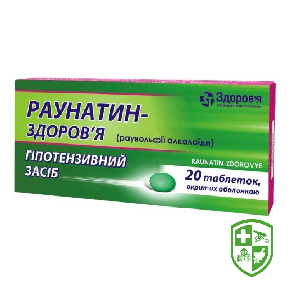 діюча речовина: 1 таблетка містить раувольфії екстракту (суми алкалоїдів раувольфії) (Раувольфії блювотної кореня екстракту сухого (31–33:1) (екстрагент: метанол)) 2 мг;