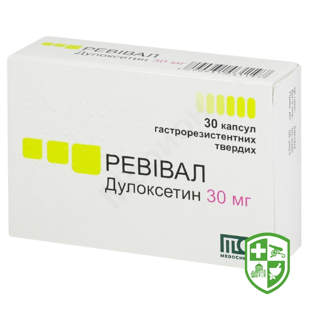 ІМАО. Через ризик виникнення серотонінового синдрому дулоксетин не слід застосовувати у комбінації з неселективними необоротними ІМАО або протягом 14 днів після припинення їх застосування. З огляду на період напіврозпаду дулоксетину, інгібітори МАО не можна призначати принаймні протягом 5 днів після припинення лікування дулоксетином (див. розділ «Протипоказання»). Одночасне застосування препарату Ревівал® із селективними оборотними інгібіторами МАО, такими як моклобемід, не рекомендується (див. розділ «Особливості застосування»). Антибіотик лінезолід — це зворотний неселективний інгібітор МАО, його не слід призначати пацієнтам, які отримують препарат Ревівал® (див. розділ «Особливості застосування»).
