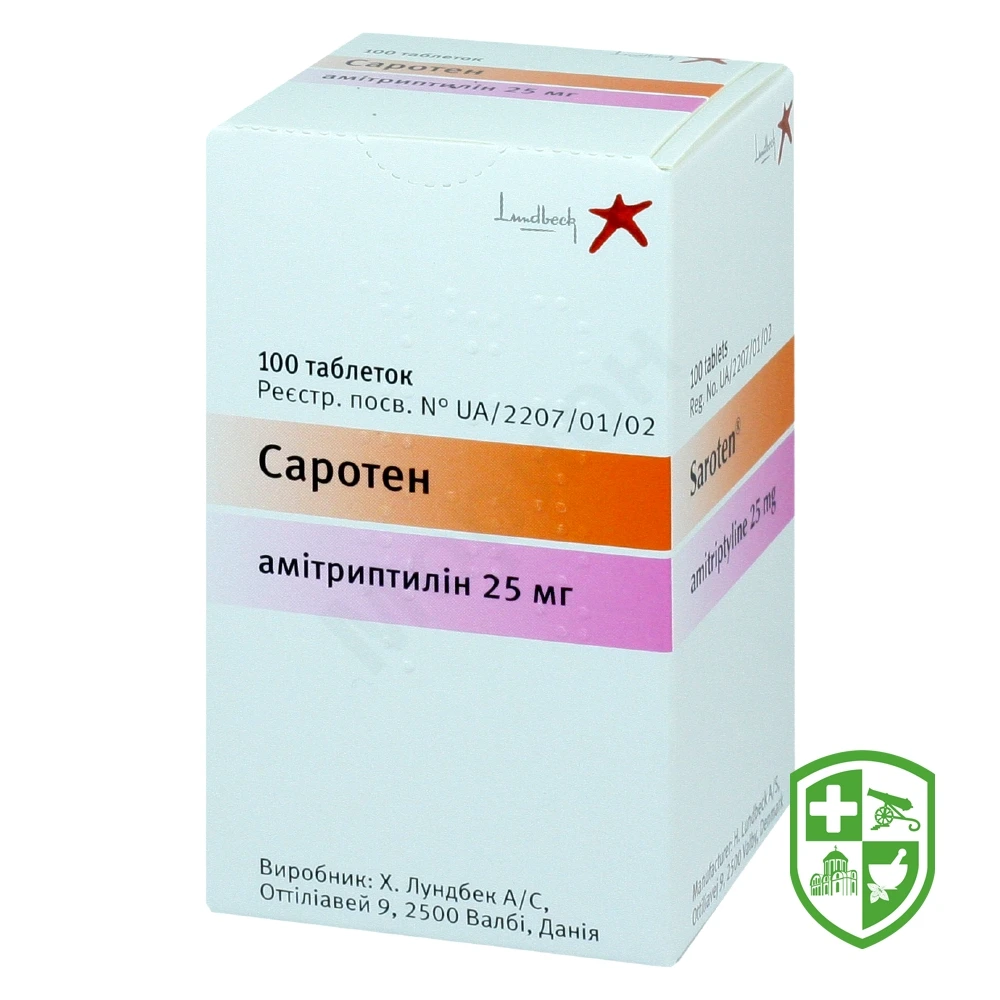 Біотрансформація. In vitro метаболізм амітриптиліну відбувається переважно шляхом деметилювання (CYP2C19, CYP3A) та гідроксилювання (CYP2D6) з подальшою кон’югацією з глюкуроновою кислотою. При цьому метаболізм характеризується генетично зумовленим поліморфізмом. Основним активним метаболітом є вторинний амін нортриптилін. Нортриптилін являє собою більш потужний інгібітор захоплення норадреналіну, ніж серотоніну, тоді як амітриптилін однаковою мірою успішно пригнічує захоплення обох нейромедіаторів. Інші метаболіти (цис- і транс-10-гідроксіамітриптилін, а також цис- і транс-10-гідроксинортриптилін) характеризуються профілем, ідентичним такому у нортриптиліну, при значно меншій силі дії. Деметилнортриптилін та амітриптилін-N-оксид присутні у плазмі крові лише в незначних кількостях, причому останній з них цілком позбавлений активності. Усі метаболіти мають меншу антихолінергічну активність порівняно з амітриптиліном і нортриптиліном. У плазмі домінує в кількісному відношенні загальний вміст 10-гідроксинортриптиліну, однак більшість метаболітів містяться у кон’югованому стані Елімінація Час напіввиведення (t½β) для амітриптиліну після перорального прийому становить приблизно 25 годин (24,65 ± 6,31 години, діапазон 16,49–40,36 години). Середня величина системного кліренсу (Cls) становить 39,24 ± 10,18 Л/г, діапазон 24,53–53,73 Л/г.