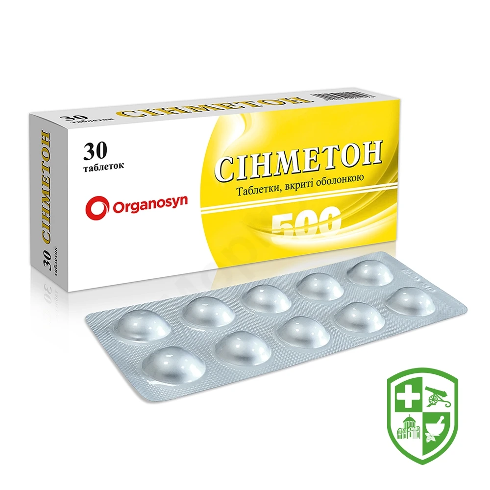 Сінметон по 500 мг: таблетки червонувато-коричневого кольору, круглої форми, двоопуклі, вкриті оболонкою;