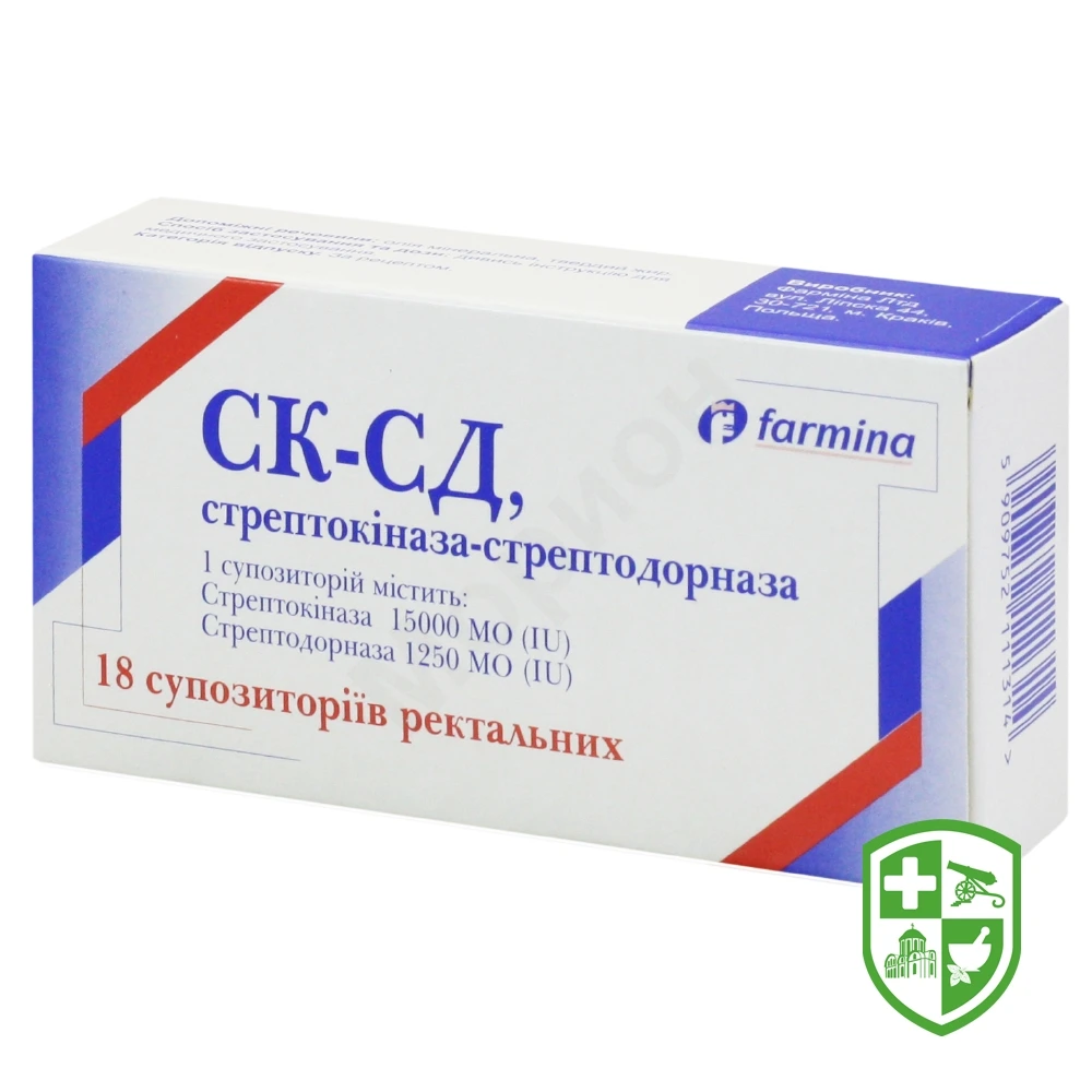 Лікарський засіб «СК-СД, стрептокіназа-стрептодорназа», супозиторії, діє місцево після ректального застосування. Стрептокіназа діє як фібринолітик та розчиняє фібринові та інші згустки. Стрептодорназа розчиняє дезоксирибонуклеопротеїди та дезоксирибонуклеокислоти, у результаті чого знижується в’язкість гнійних ексудатів і розчиняються мертві клітини.