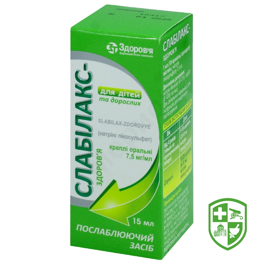 Фармакодинаміка. Натрію пікосульфат, діюча речовина препарату Слабілакс-Здоров'я, є проносним (послаблюючим) засобом місцевої дії триарилметанової групи. Натрію пікосульфат після бактеріального розщеплення у товстій кишці стимулює її слизову оболонку, прискорюючи перистальтику, сприяє кумуляції води та електролітів у просвіті товстої кишки. Результатом цього є стимуляція дефекації, зменшення часу транзиту і пом'якшення калу.