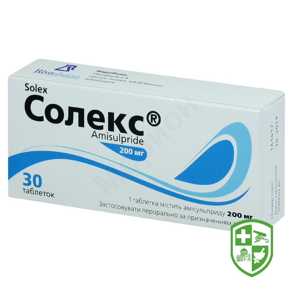 Його фармакодинамічні властивості характеризуються селективним і превалюючим спорідненням з рецепторами D2 і D3 лімбічної системи, в той час як не володіють спорідненістю до субтипу D1 D4 і D5. Амісульприд не має спорідненості з рецепторами серотоніну та іншими нейрорецепторами, такими як рецептори гістаміну Н1, холінергічні та адренергічні рецептори. До того ж, амісульприд не зв’язується з сигма-ділянками. При дослідженні високих доз на тваринах амісульприд блокує переважно дофамінергічні нейрони мезолімбічної системи порівняно з такими ж стріатної системи. У низьких дозах амісульприд блокує переважно пресинаптичні дофамінергічні рецептори D2 і D3, що пояснює його вплив на негативні симптоми. Цей фармакологічний профіль пояснює клінічну ефективність препарату Солекс® як проти негативних, так і позитивних симптомів шизофренії.