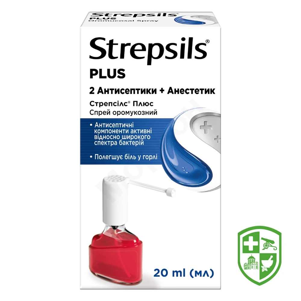 Амілметакрезол і 2,4-дихлорбензиловий спирт чинять антисептичну дію, лідокаїн — місцевий анестетик. Стрепсілс Плюс — антисептичний комбінований препарат з місцевою анестезуючою дією. Активний відносно широкого спектра грампозитивних і грамнегативних мікроорганізмів in vitro; чинить також протигрибкову дію.