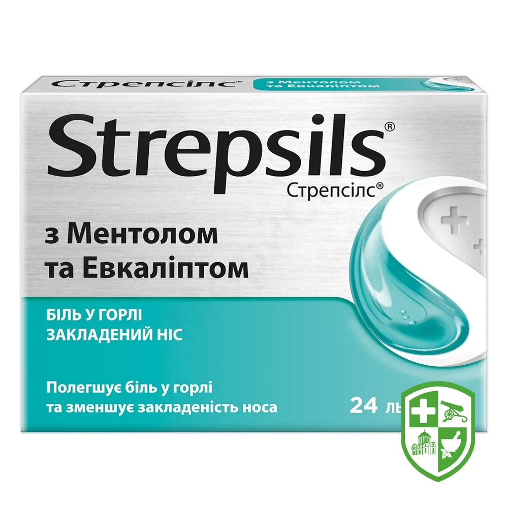Стрепсілс з ментолом та евкаліптом льодяники з ментолом та евкаліптом №24