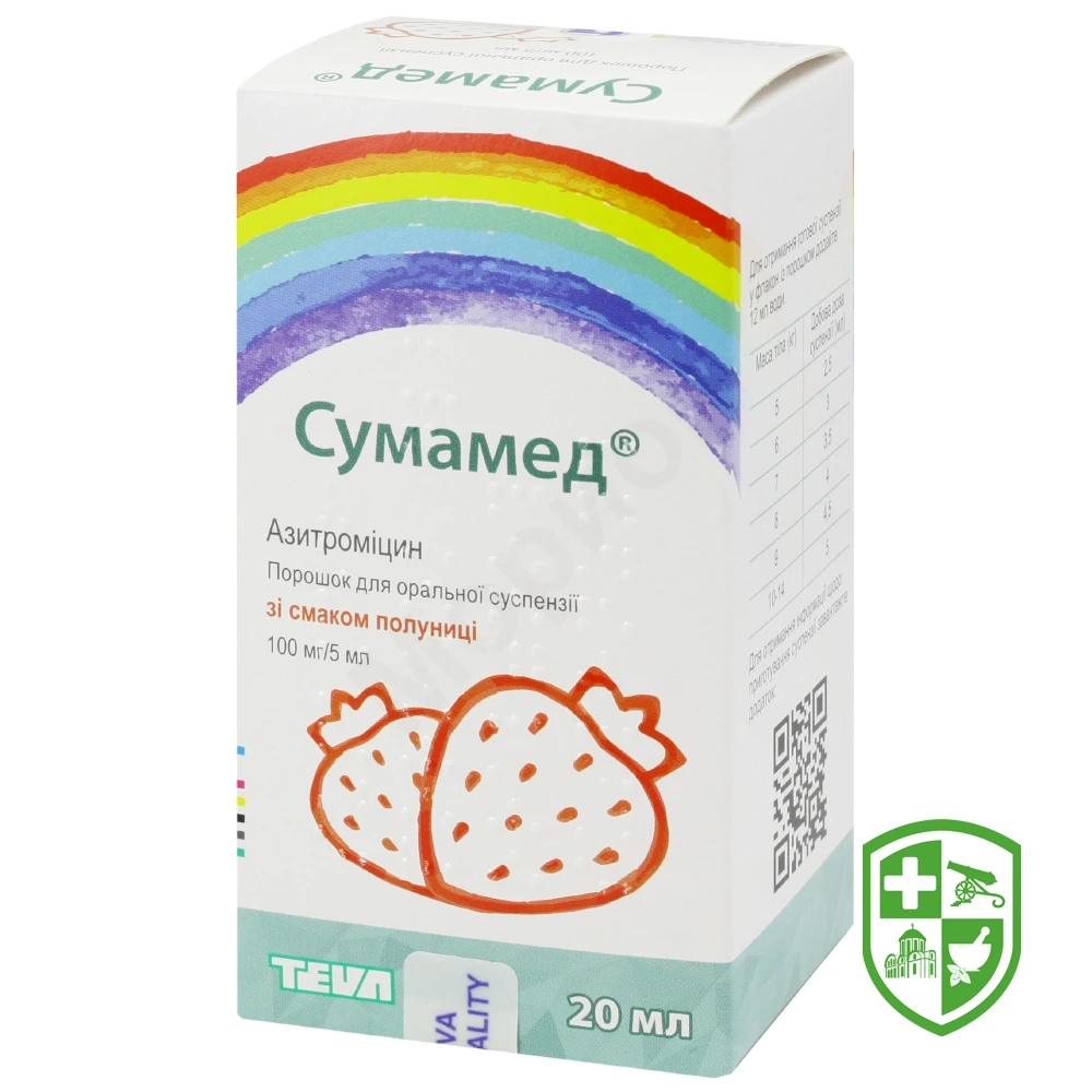 Сумамед пор. д/сусп. 100 мг/5 мл 20.мл зі смаком полуниці №1