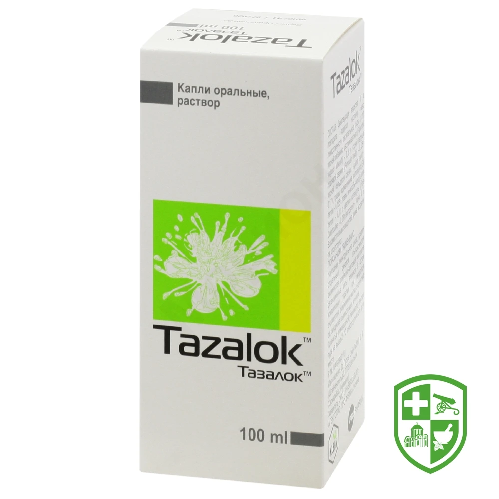 Рослинний негормональний препарат з комплексною дією, зумовленою синергічними ефектами компонентів, що входять до складу препарату та виявляють гормонорегулюючу, антипроліферативну, протизапальну, седативну та загальнозміцнювальну дію. Флавоноїди біологічно активних речовин препарату ТазалокТМ за своєю структурою подібні до ендогенного естрогену, але не проявляють естрогеноподібної активності, вони мають можливість конкурентно зв’язуватися з рецепторами естрогенів (андрогенів) при надлишку самих естрогенів (андрогенів) чи рецепторів до них в органах-мішенях, змінюють активність ферментів ароматазної системи, перешкоджаючи конверсії андрогенів у естрогени. Таким чином, ТазалокТМ проявляє селективну антиестрогенну активність, сприяє ритмічному продукуванню і нормалізації співвідношення гонадотропних гормонів, зниженню рівня пролактину та підвищенню рівня прогестерону, усуває дисбаланс між естрадіолом і прогестероном, нормалізує другу фазу менструального циклу. Має виражений вплив на залозисту тканину та стромальні елементи молочних залоз, яєчників та матки, проявляє антипроліферативні та протизапальні властивості, запобігає розвитку диспластичних процесів у цих тканинах. При полікістозному ураженні яєчників сприяє розм’якшенню капсули кісти, зменшенню її напруження за рахунок резорбтивної дії, посиленню функції неушкодженої частини яєчника. Сприяє активній резорбції вмісту кіст, розсмоктуванню безболісних щільних вузлів у молочних залозах, зменшує реакцію молочних залоз на фази менструального циклу. Проявляє спазмолітичні властивості, болезаспокійливу та заспокійливу дію. Біологічно активні молекули препарату ТазалокТМ мають здатність індукувати та посилювати апоптоз, блокувати дію ростових факторів, пригінчувати ангіогенез.