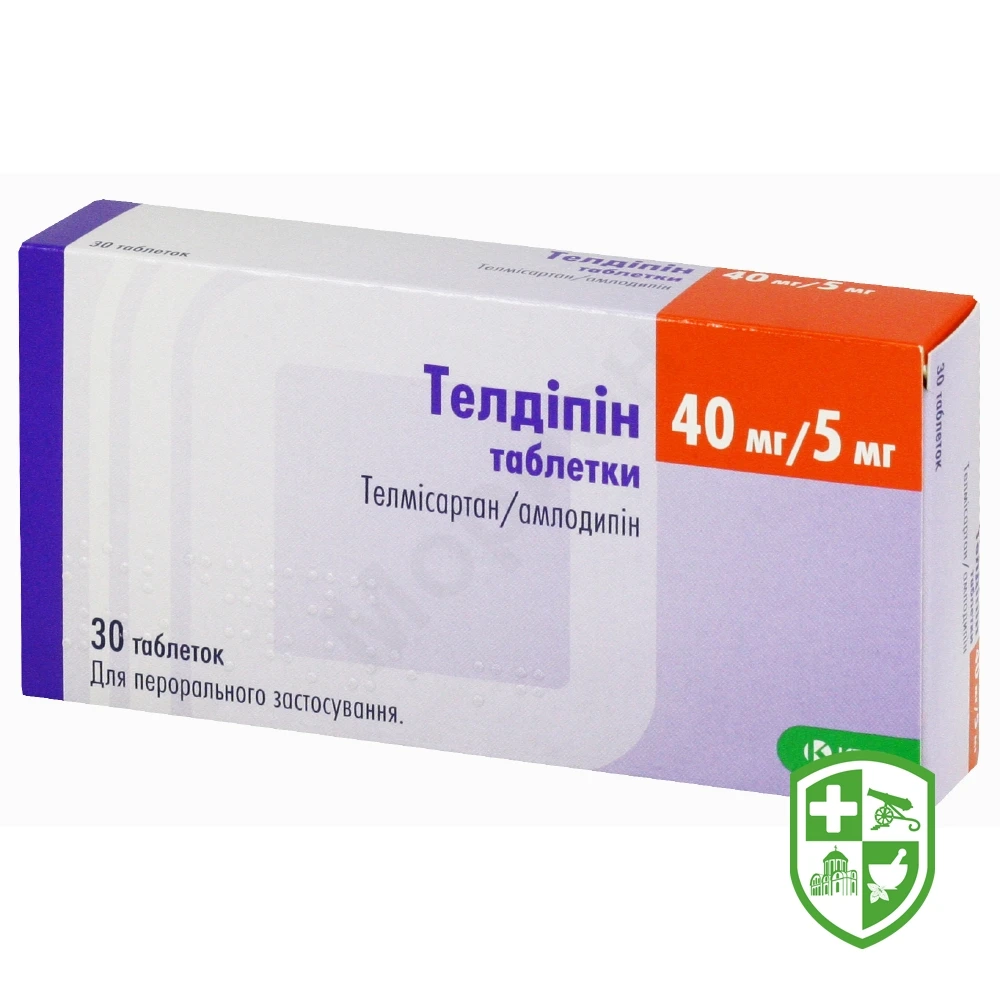 Телдіпін, таблетки по 40 мг/5 мг: овальні, злегка двоопуклі, двошарові таблетки, з одного боку коричнювато-жовтого кольору, мармурові, з іншого боку — від білого до майже білого кольору з гравіюванням K3;