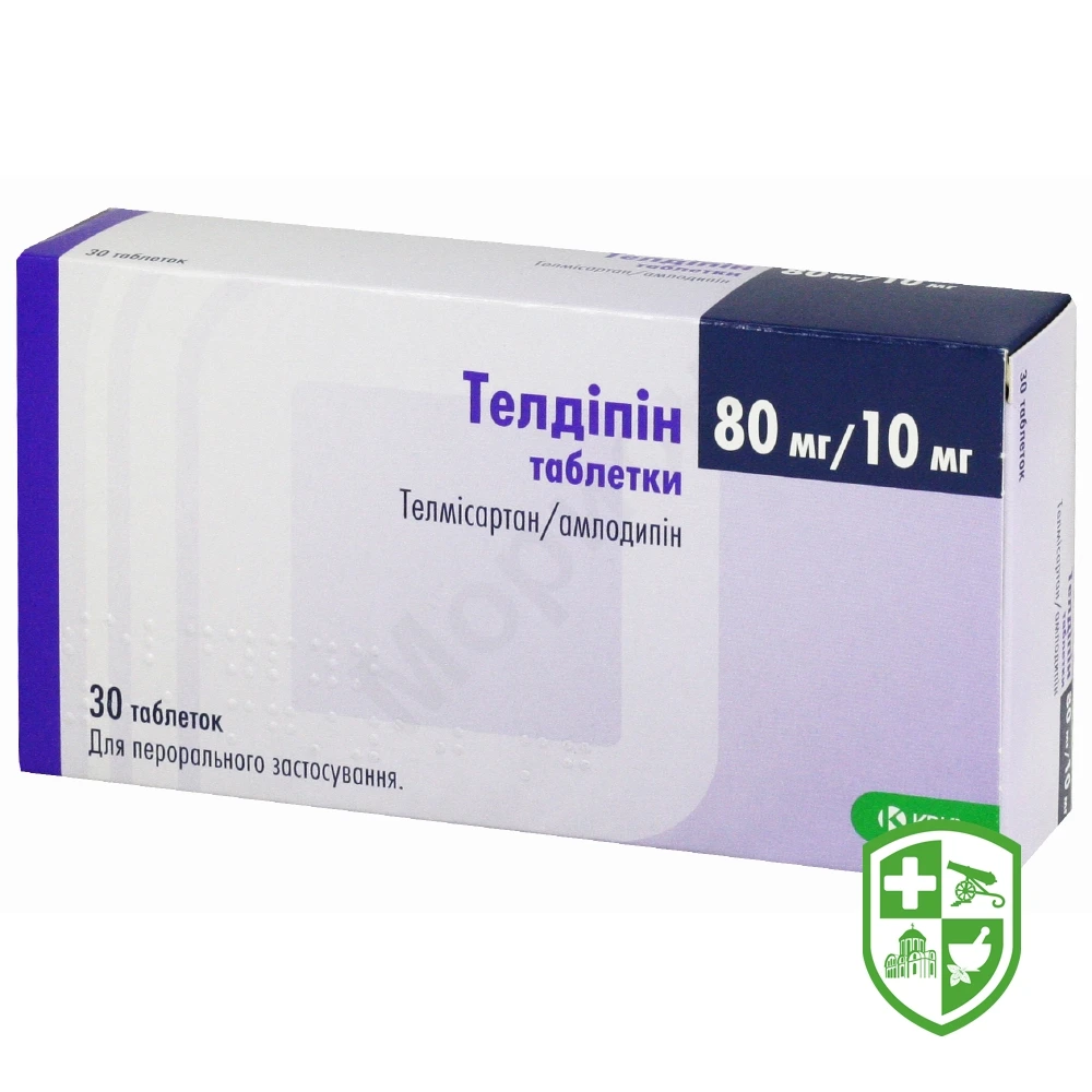 Телдіпін, таблетки по 80 мг/10 мг: овальні, злегка двоопуклі, двошарові таблетки, з одного боку коричнювато-жовтого кольору, мармурові, з іншого боку — від білого до майже білого кольору з гравіюванням K1.