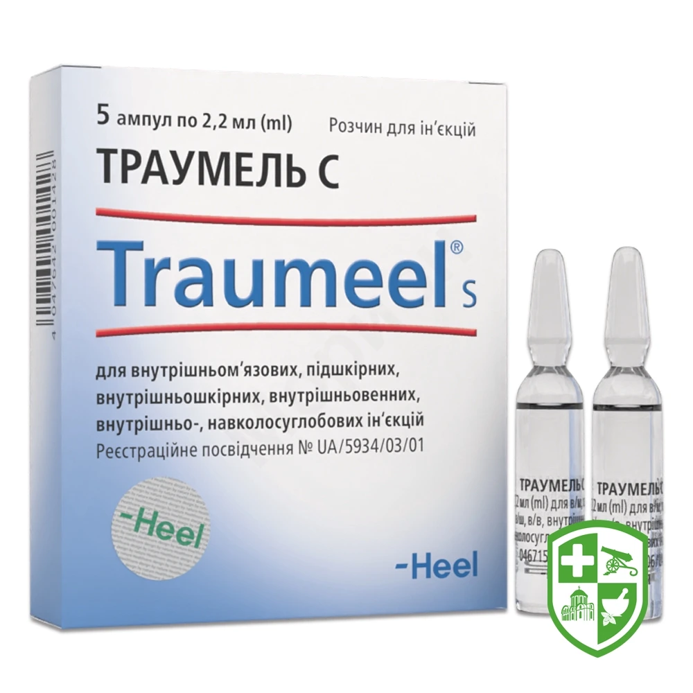 діючі речовини: 2,2 мл розчину містять: Achillea millefolium D3 - 2,2 мг, Aconitum napellus D2 - 1,32 мг, Arnica montana D2 - 2,2 мг, Atropa bella-donna D2 - 2,2 мг, Bellis perennis D2 - 1,1 мг, Calendula officinalis D2 - 2,2 мг, Echinacea D2 - 0,55 мг, Echinacea purpurea D2 - 0,55 мг, Hamamelis virginiana D1 - 0,22 мг, Hepar sulfuris D6 - 2,2 мг, Hypericum perforatum D2 - 0,66 мг, Matricaria recutita D3 - 2,2 мг, Mercurius solubilis Hahnemanni D6 - 1,1 мг, Symphytum officinale D6 - 2,2 мг;