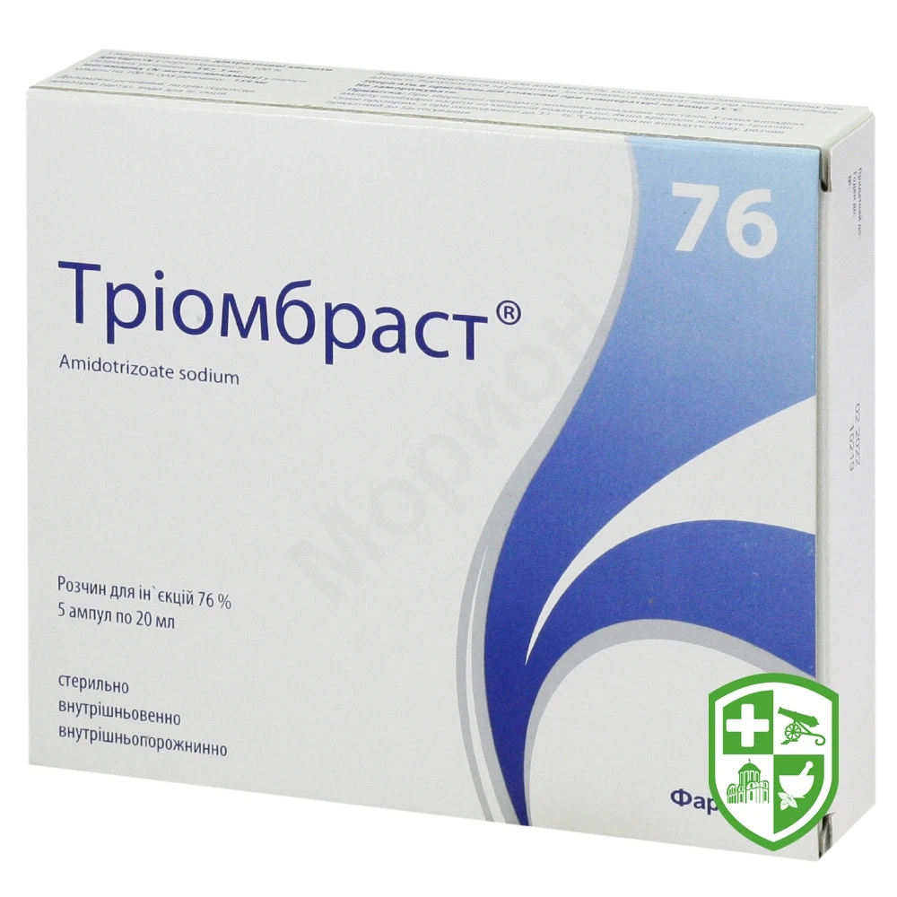 Рентгеноконтрастний засіб Тріомбраст® є сіллю амідотризоєвої кислоти, яка містить зв’язаний йод, що поглинає рентгенівські промені.