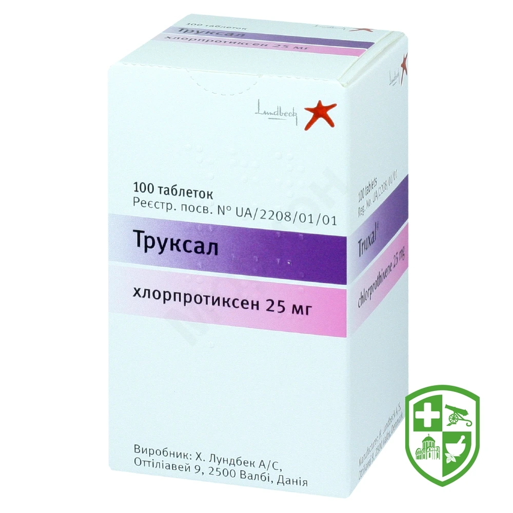 Труксал слід застосовувати з обережністю пацієнтам із синдромом Паркінсона або із органічним мозковим синдромом, епілептичними розладами, прогресуючими захворюваннями печінки, нирок або серцево-судинної системи, пацієнтам із міастенією, гіпертрофією передміхурової залози або вузькокутною глаукомою. Труксал слід застосовувати з обережністю пацієнтам літнього віку, які сприйнятливі до ортостатичних порушень.