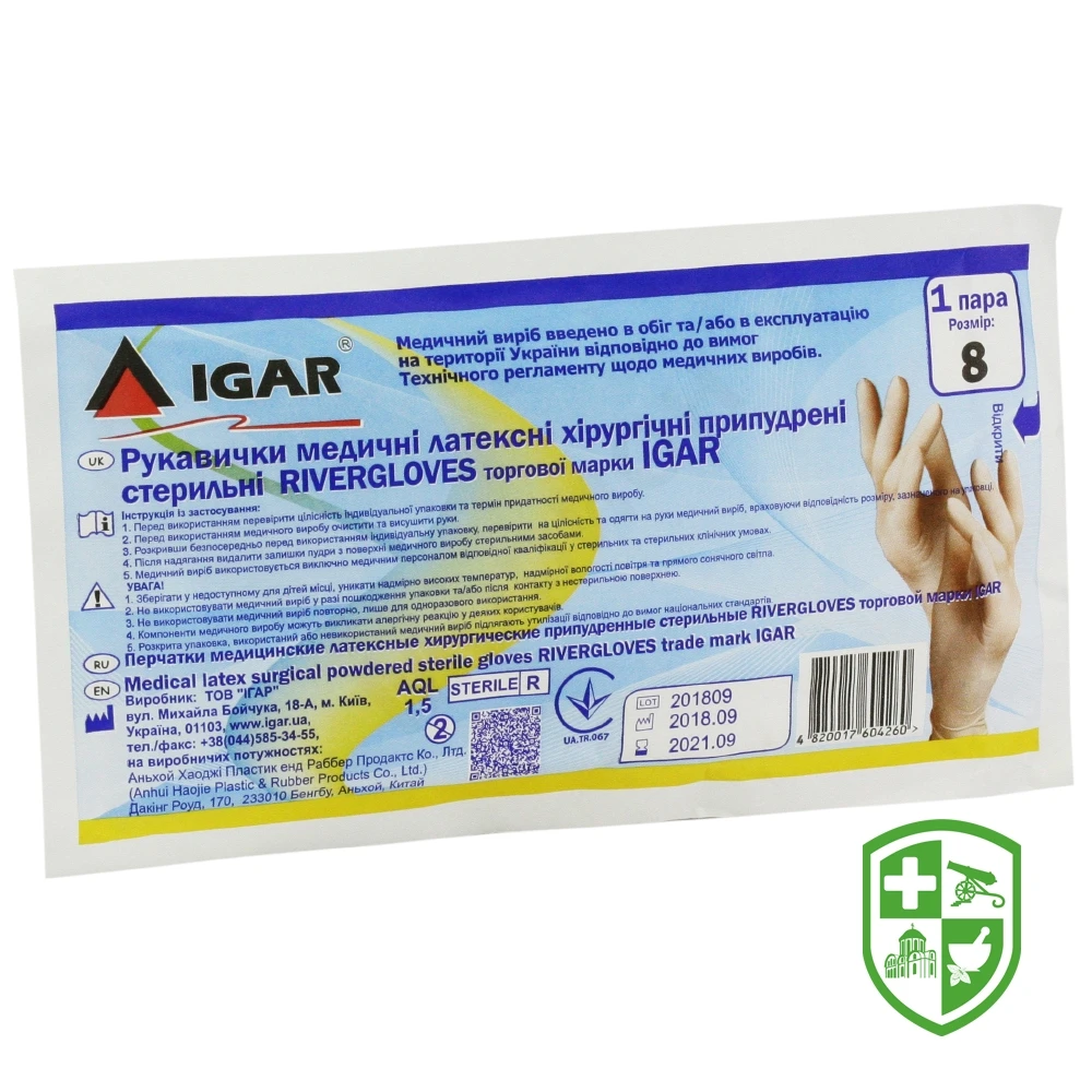 Рукавички хірургічні латексні стерильні Рівергловс Ігар 8, пара, припудр.