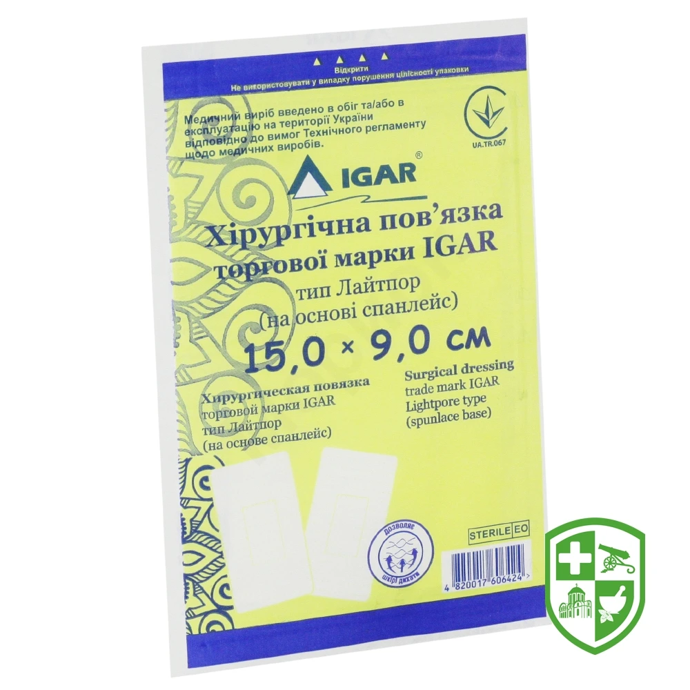 Пов'язка хірургічна Лайтпор Ігар 15 * 9 см, тип лайтпор, спанлейс