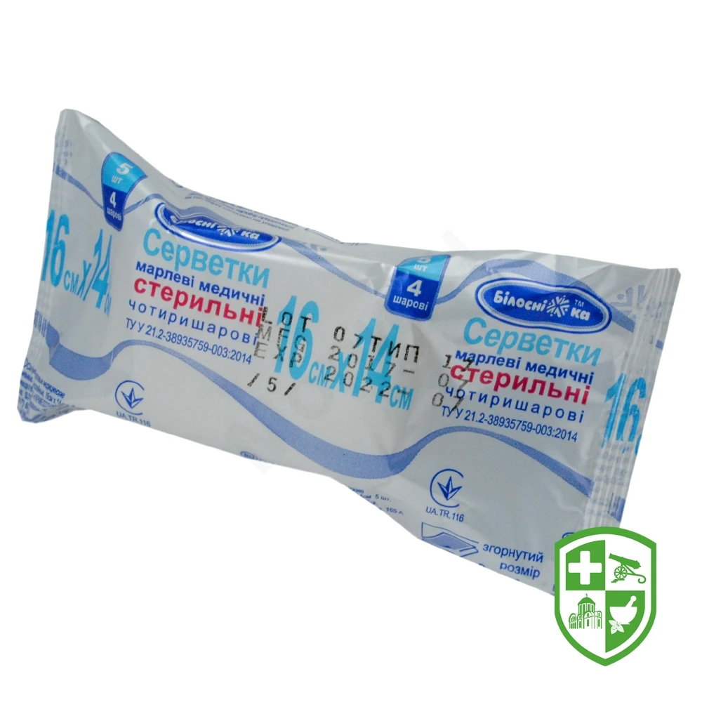 Серветка марлева стерильна 16 см * 14 см, 8 см * 4 см, тип 17, 4-х шарова