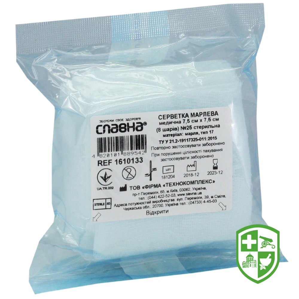 Серветка марлева Славна стерильна 7,5 см * 7,5 см, 8-шарів, тип 17
