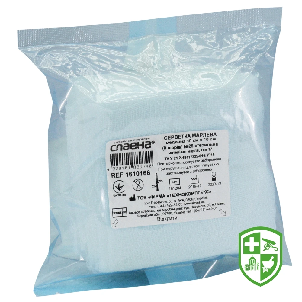 Серветка марлева Славна стерильна 10 см * 10 см, 8-шарів., тип 17