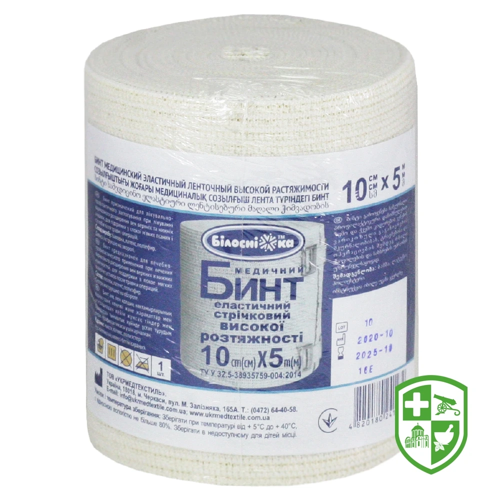 Бинт еластичний стрічковий високої розтяжності 10 см х 5 м, тм "Білосніжка"