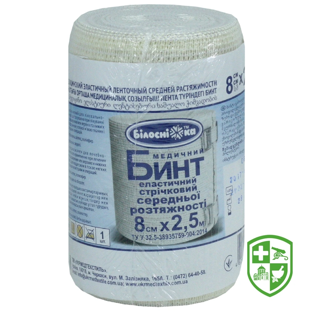 Бинт еластичний стрічковий середньої розтяжності 8 см х 2,5 м, тм "Білосніжка"
