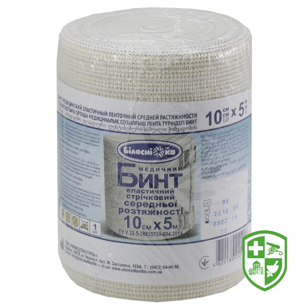 Бинт еластичний стрічковий середньої розтяжності 10 см х 5 м, тм "Білосніжка"