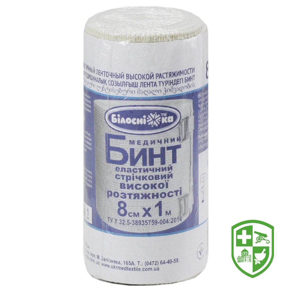 Бинт еластичний стрічковий високої розтяжності 8 см х 1 м, тм "Білосніжка"