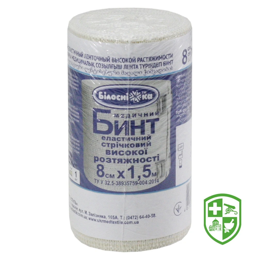 Бинт еластичний стрічковий високої розтяжності 8 см х 1,5 м, тм "Білосніжка"