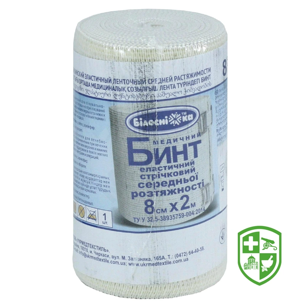 Бинт еластичний стрічковий середньої розтяжності 8 см х 2 м, тм "Білосніжка"