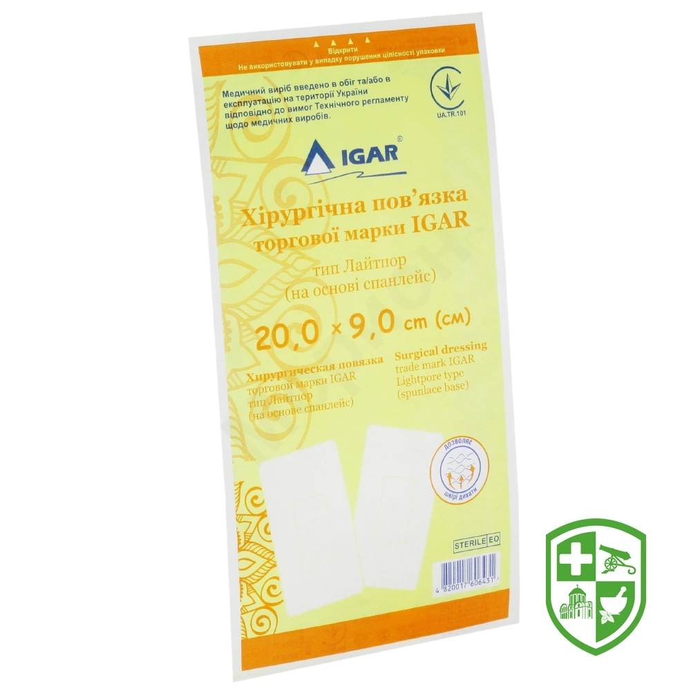 Лейкопластир бактерицидний Ігар 20 * 9 см, лайтпор, хір. пов'язка, основа спанлейс