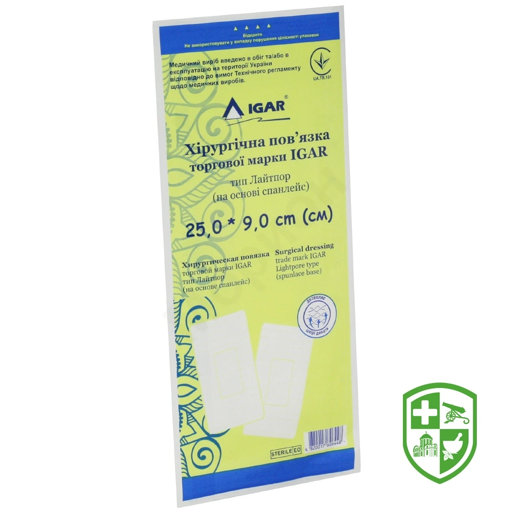 Лейкопластир бактерицидний Ігар 25 * 9 см, лайтпор, хір. пов'язка, основа спанлейс