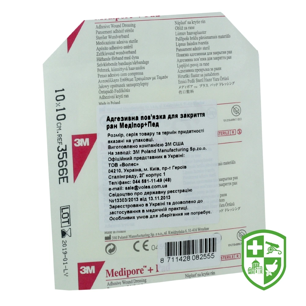 3М Медипор+пад адгезивна пов'язка 10 см * 10 см