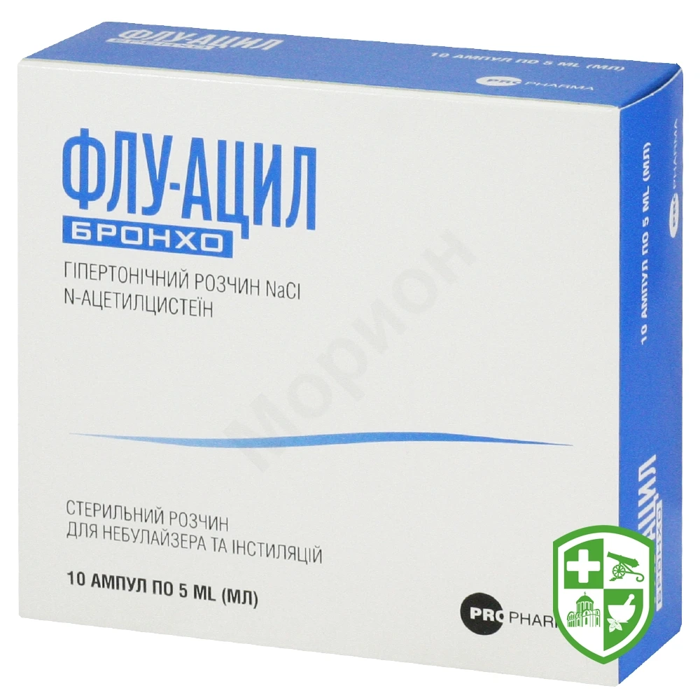 Флу-Ацил Бронхо — це стерильний гіпертонічний сольовий розчин для небулайзера та інстиляцій на основі натрію хлориду і N-ацетилцистеїну. Ампули для одноразового застосування. рекомендовані при респіраторних захворюваннях, які супроводжуються виділенням в'язкого і щільною мокротиння, бронхітах, емфіземи легенів, муковісцидозі, бронхоектатичній хворобі, синуситі. секреторному отиті.