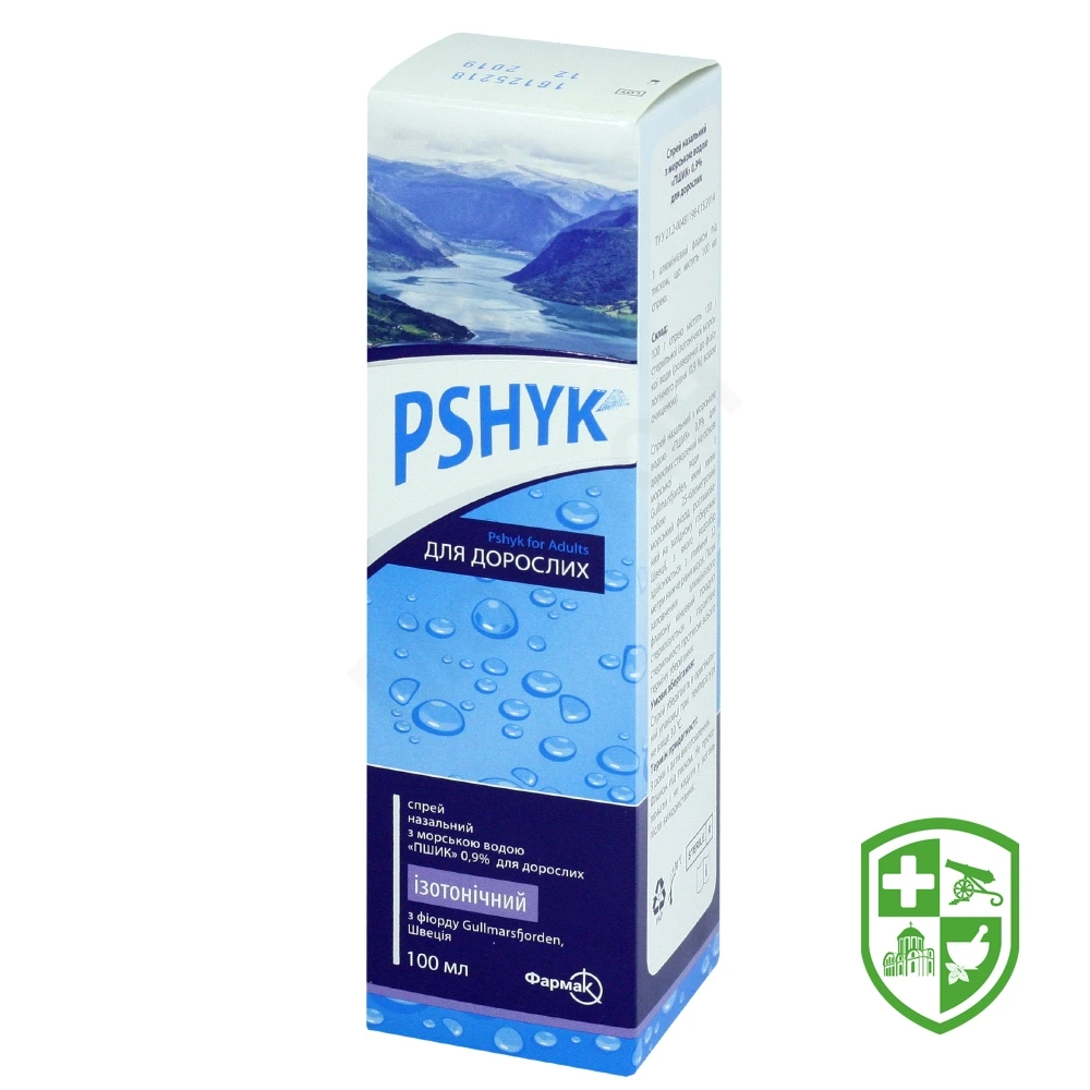 Спрей назальний з морською водою «Пшик» 0,9% для дорослих створений на основі морської води з Gullmarsfjorden, який являє собою 25-кілометровий морський фіорд, розташований на західному узбережжі Швеції, з якого водозбір здійснюється з глибини 32 метри нижче рівня моря. Після заповнення алюмінієвого флакону кінцевий продукт стерилізується з гарантією стерильності протягом всього терміну зберігання.