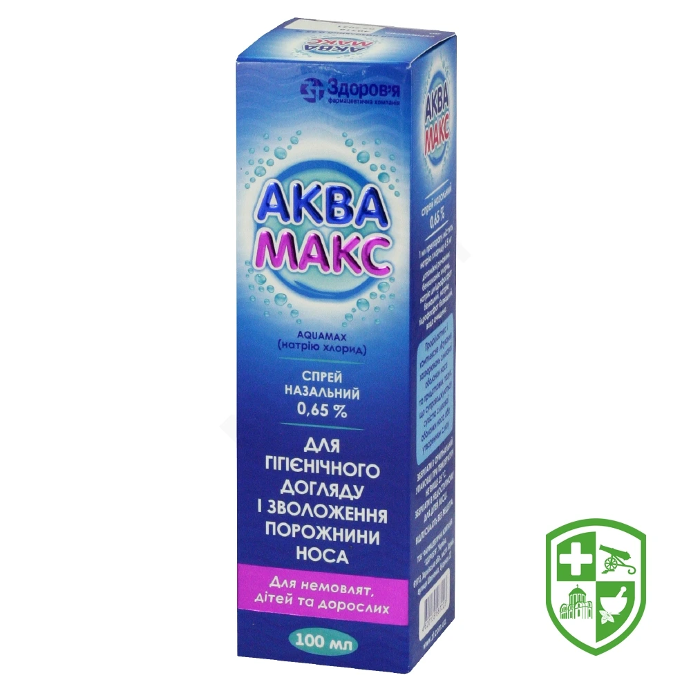 Високоочищений стабілізований 0,65% розчин натрію хлориду максимально відповідає природному назальному секрету. Буферні речовини, що входять до складу Аквамаксу, наближують рН розчину до рН природної секреторної рідини слизової оболонки носа і підтримують цей показник на постійному рівні.