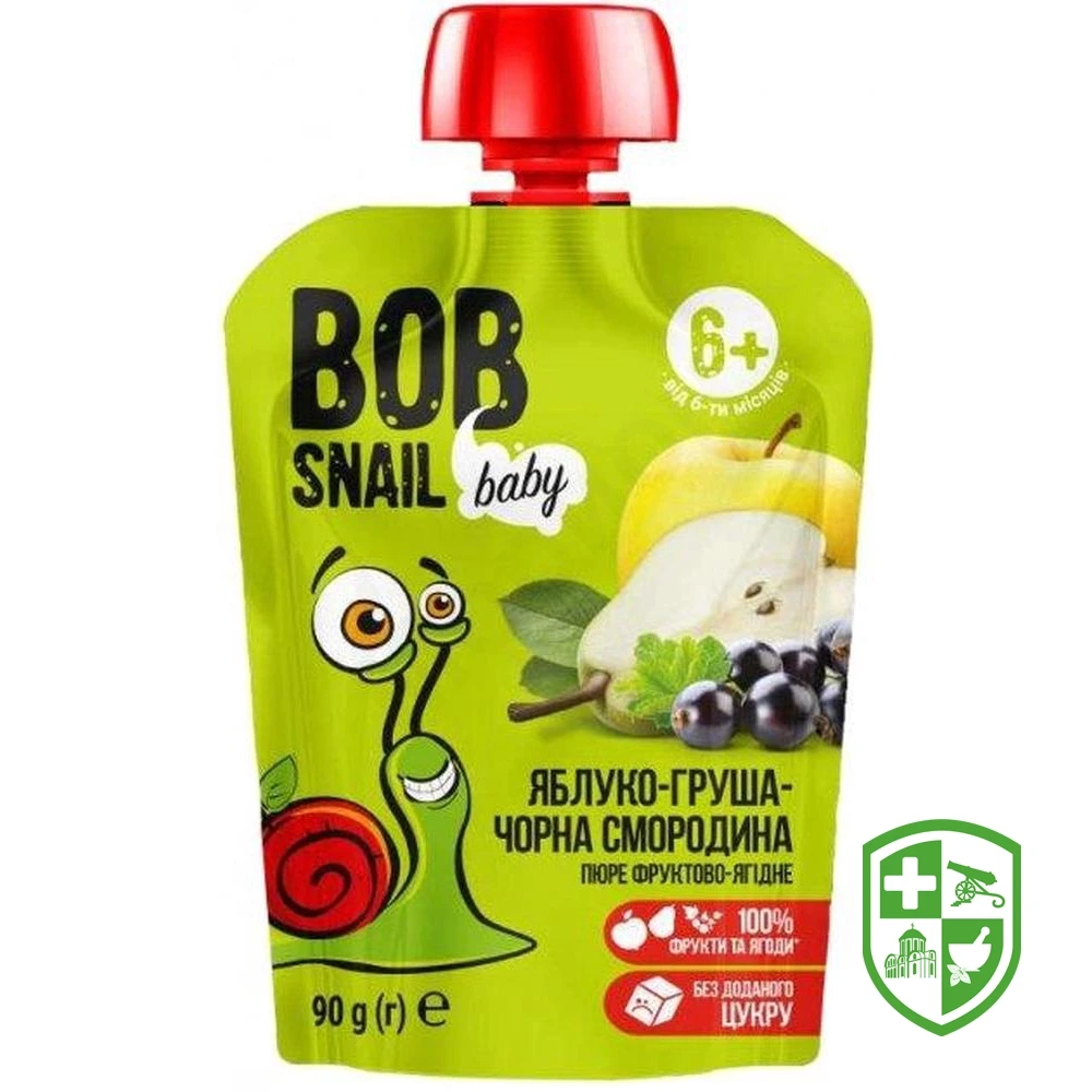 Пюре фруктове Равлик Боб для дітей 90 г, яблуко-груша-чорна смородина