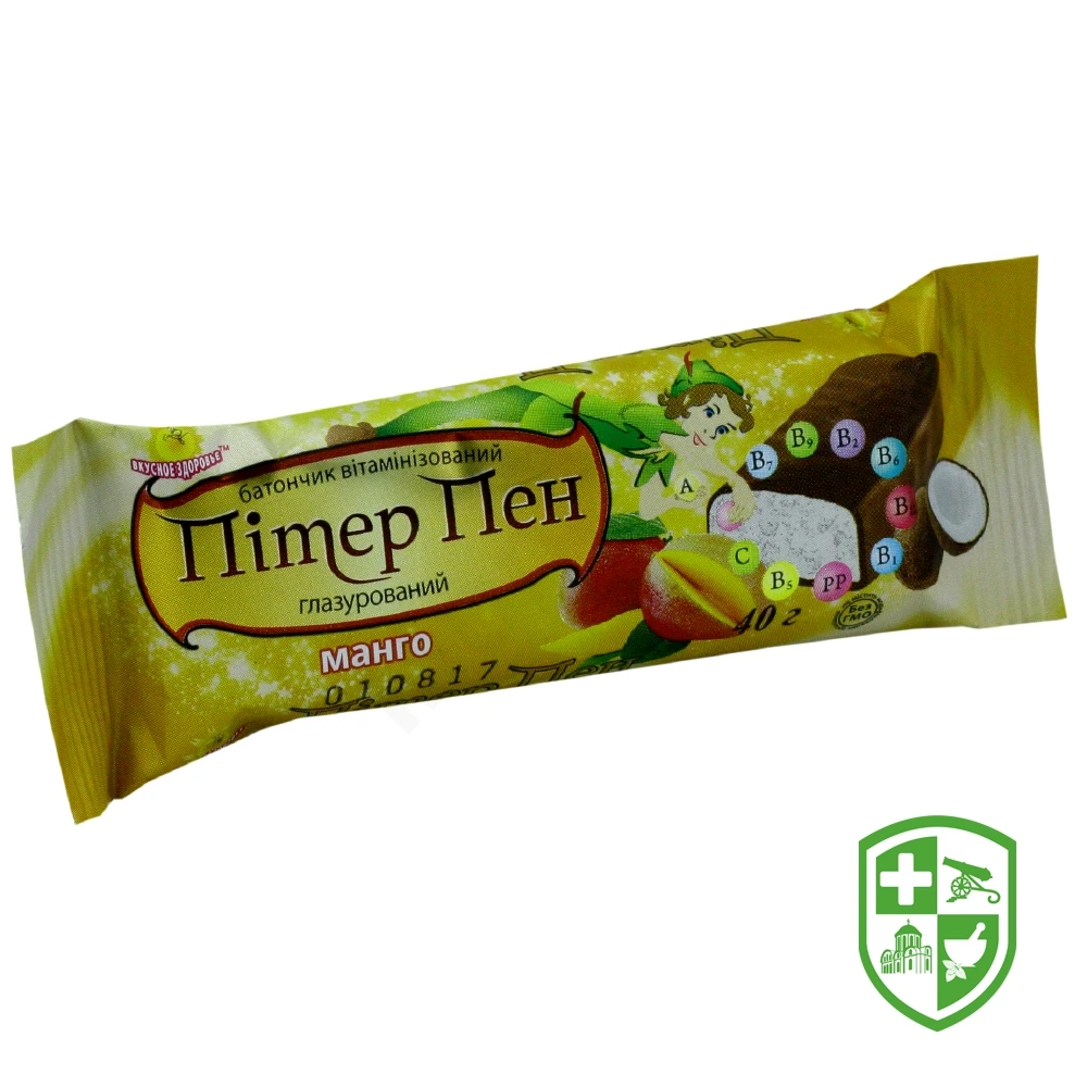 Батончик Пітер Пен 40 г, манго, в глазурі, вітамін., смак тропіч. фруктів
