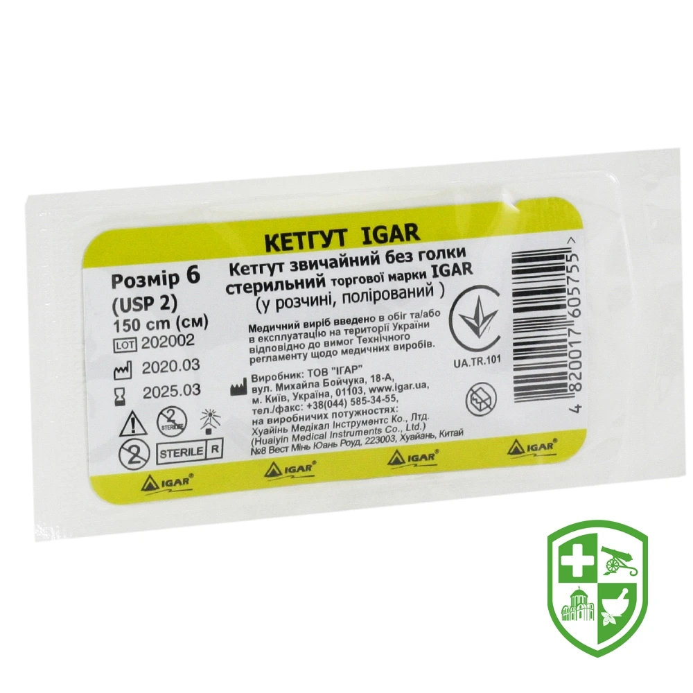 Кетгут звичайний без голки стерильний Ігар розмір 6