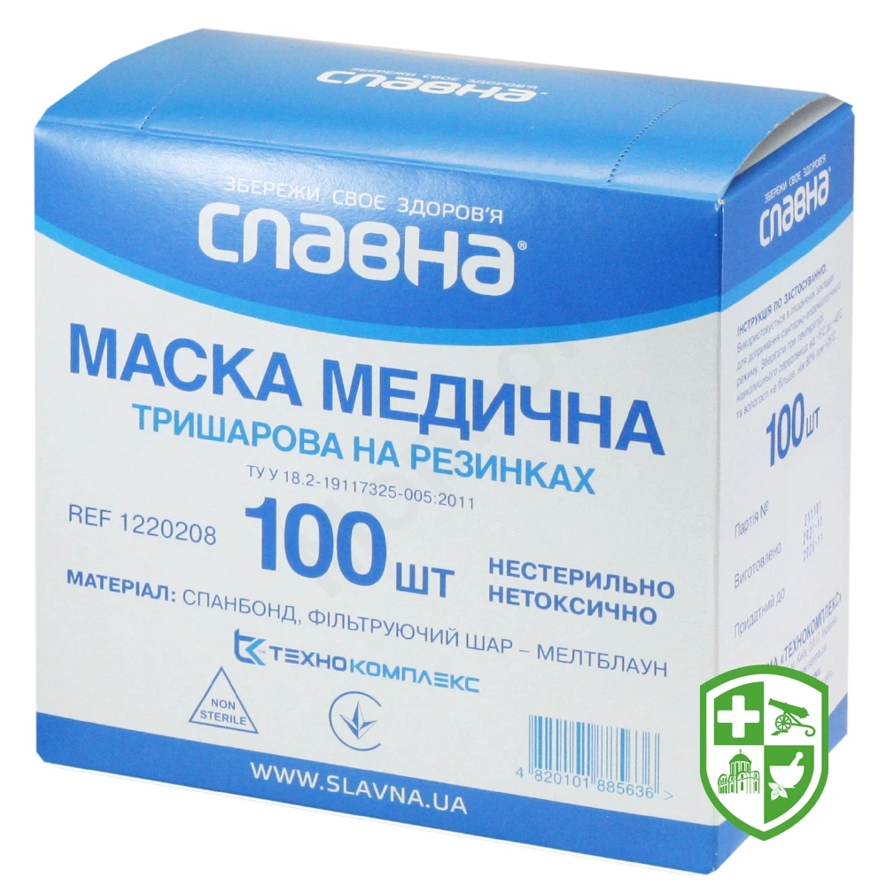 Маска медична Славна нестерильна 3-х шаров., на гумках