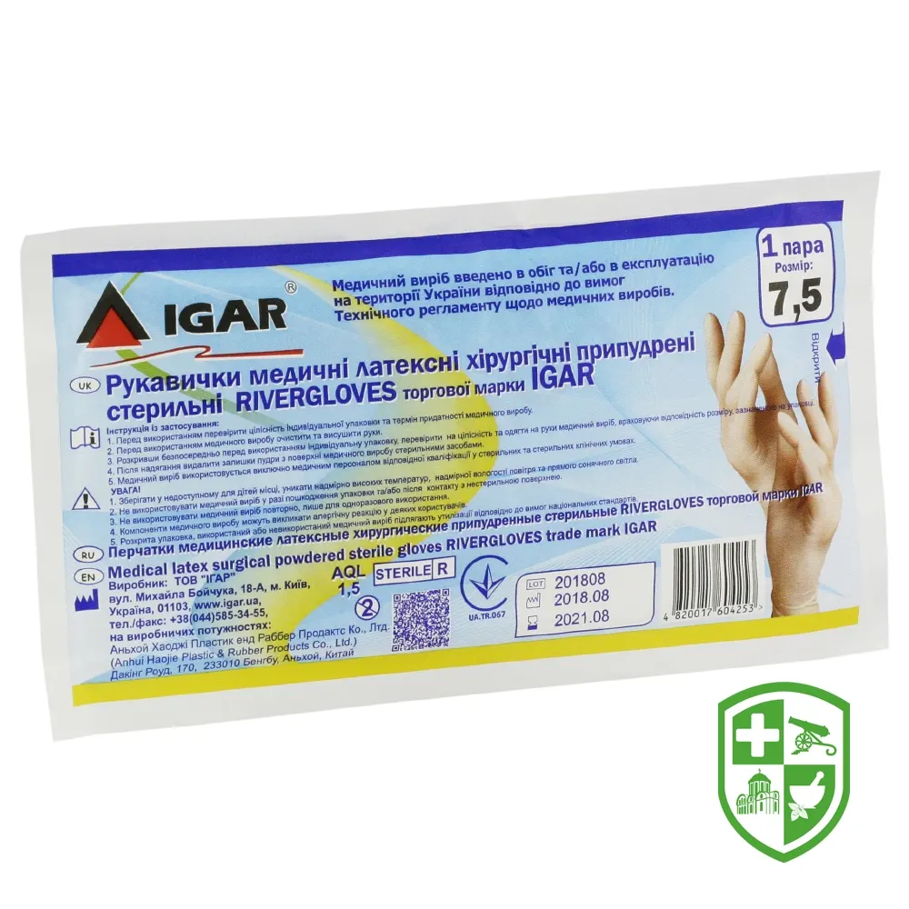 Рукавички хірургічні латексні стерильні Рівергловс Ігар 7,5, пара, припудр.