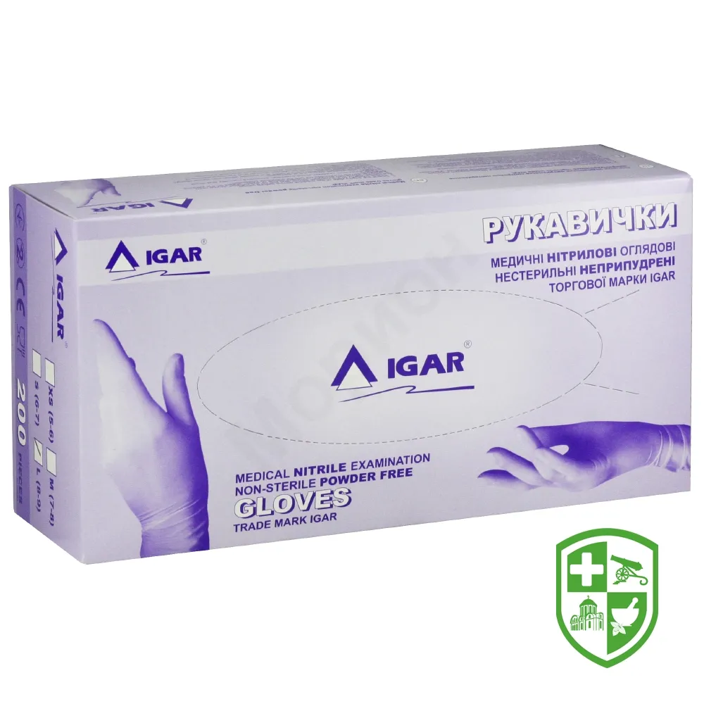 Рукавички оглядові нітрилові нестерильні Ігар розмір L (8-9), пара, неприпудр.