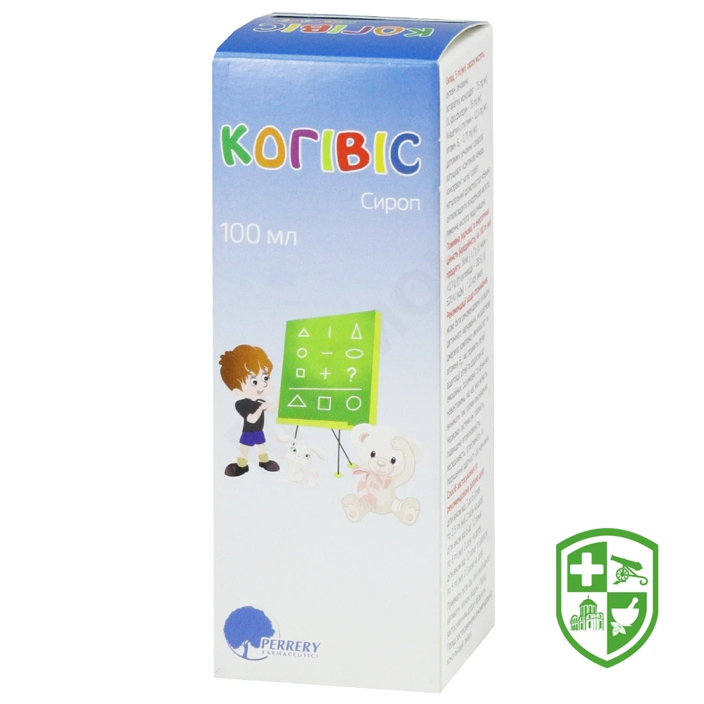 Когівіс (Cogivis) — сироп для перорального вживання, який є спеціально розробленим комплексом амінокислот та вітаміну В6, які сприяють легкій адаптації дітей та дорослих до емоційних, розумових та фізичних навантажень, під час якої можуть виникати такі прояви виснаження нервової системи як слабкість, підвищена втомлюваність, вередливість, агресивність та порушення здатності до навчання.Надходження збалансованої кількості амінокислот та вітамінів в мозок є дуже важливим для нормального його розвитку і розумової діяльності, особливо в перші роки життя, коли відбувається найбільш інтенсивний розвиток нервової системи, а також в період підвищених розумових навантажень.Нервова система фізіологічно не синтезує необхідної кількості речовин, які протистоять стресу, а постійне нервове напруження призводить до їх виснаження, що потребує екзогенного поповнення.Амінокислоти відіграють важливу роль в роботі нервової системи, тому що являють собою нейромедіатори, активні біологічні речовини, що відповідають за передачу нервових імпульсів. Вони відповідають за баланс процесів збудження і гальмування.Аспарагін — це замінна амінокислота, основними функціями якої є підтримка здоров’я нервової системи за рахунок стабілізації нервових процесів. Він також грає важливу роль в обміні аміаку.DL-фосфосерин являє собою компонент, який міститься в мембранах всіх клітин організму і найбільше в головному мозку. Глутамін – це замінна амінокислота, яка є попередником мозкових нейротрансмітерів.Вітамін В6 відіграє важливу роль в обміні речовин, необхідний для нормального функціонування центральної та периферичної нервової системи. Механізм дії Комплекс з аспарагіну, DL-фосфосерину,L-глутаміну і піридоксину надає м’яку стимулюючу і тонізуючу дію на ЦНС, підвищує розумову і фізичну працездатність. Аспарагін підтримує баланс в процесах, що відбуваються в центральній нервовій системі, перешкоджає як надмірному збудженню, так і зайвому гальмуванню. Він бере участь в процесах синтезу амінокислот в печінці. DL-фосфосерин бере участь в активації, регенерації і диференціюванні нейронів, синтезі і вивільненні нейромедіаторів, рухах іонів і проведенні біоелектричного струму, а також знижує вироблення кортизолу — гормону що виділяється під час емоційного та фізичного стресу. Глутамін служить попередником мозкових нейротрансмітерів, таких як збудливий нейротрансмітер глютамат і пригнічуючий нейротрансмітер гамма-амінобутирова кислота. Глутамін дуже легко проникає через ГЕБ і в клітинах головного мозку переходить в глютамінову кислоту і назад. Вітамін В6 є коферментом великої кількості ферментів, що діють на неокислювальний обмін амінокислот (процеси декарбоксилювання, переамінування). Бере участь в обміні амінокислот. Катаболізує нейром’язові процеси, які особливо важливі в дитячому віці, при затримці розумового та фізичного розвитку, при хронічній втомлюваності та астенії.