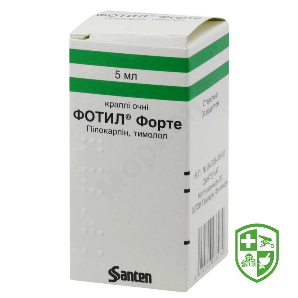 Підвищений внутрішньоочний тиск є основним фактором ризику в патогенезі глаукоматозних дефектів поля зору. Якщо пілокарпін і тимолол поєднуються в одному препараті, очікується посилена дія щодо зниження внутрішньоочного тиску, оскільки ці препарати мають різний механізм дії і впливають на різні тканини. Тимолол подовжує час знаходження пілокарпіну в оці, затримуючи його виведення. Краплі очні Фотил® Форте знижують як підвищений, так і нормальний внутрішньоочний тиск при різних видах глаукоми та очної гіпертензії. Вони містять сполуку, яка спричиняє міоз, тому також їх можна використовувати для зниження внутрішньоочного тиску при закритокутовій глаукомі.